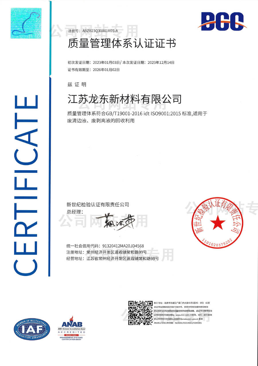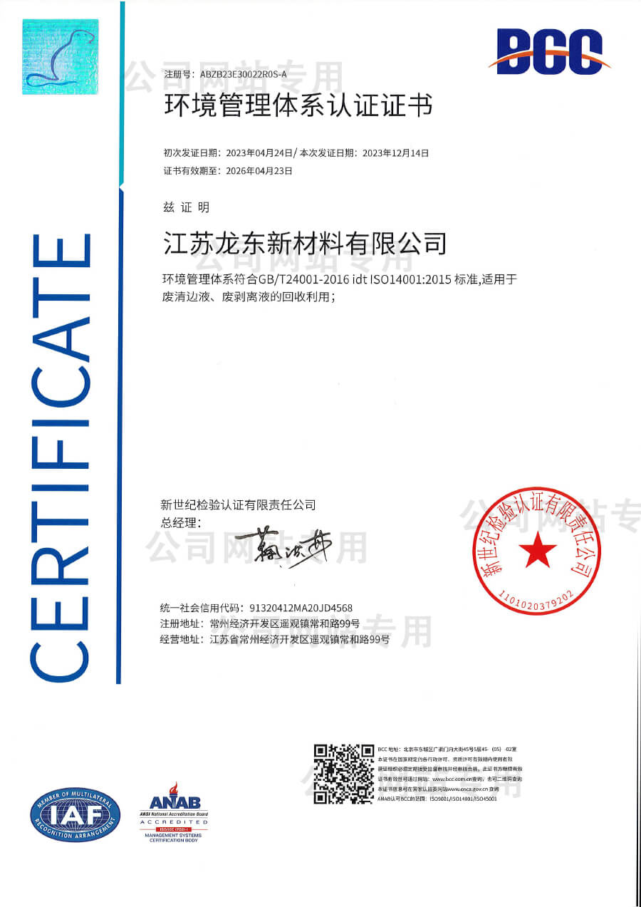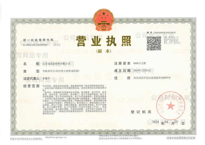 江苏龙东新材料有限公司位于常州市经济开发区常和路99号。是一家深耕于半导体领域的高新技术企业,专注于湿电子材料的研发、生产、销售和回收利用。公司主要生产设备和检测仪器全部从国外引进,产品质量达到国际同类先进水平。作为常州市种子独角兽企业,始终以技术创新和可持续发展为核心竞争力,为半导体行业提供高品质、绿色环保的产品和服务。
